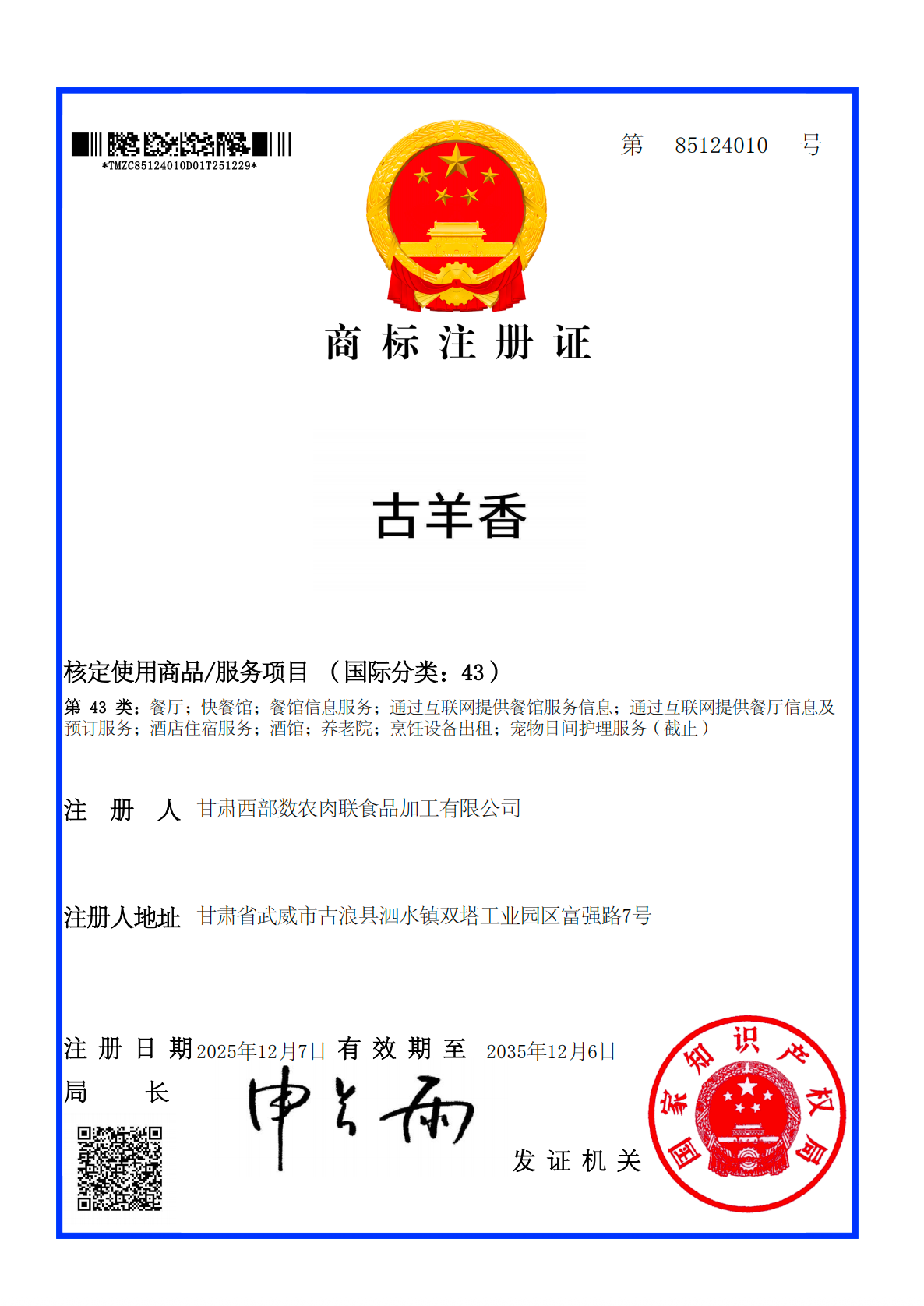 古羊香43类商标